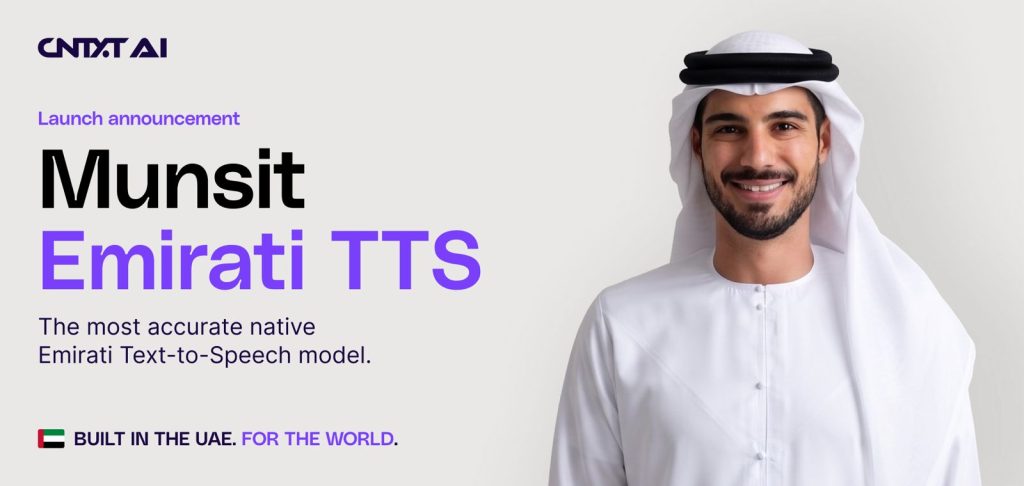 أبوظبي، الإمارات العربية المتحدة – أبريل 2026: أعلنت شركة CNTXT AI اليوم عن إطلاق “مُنصِت الإماراتي لتحويل النص إلى كلام (Munsit Emirati TTS)”، وهو نموذج متقدم للذكاء الاصطناعي الصوتي مصمم لتوليد اللغة العربية باللهجة الإماراتية بصورة طبيعية تحاكي الصوت البشري بشكل فوري، بما يلبي احتياجات قطاعي الأعمال والمستهلكين.