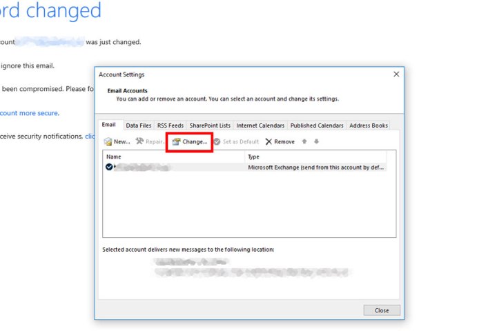 قم بتغيير كلمة مرور عميل Outlook الخاص بك