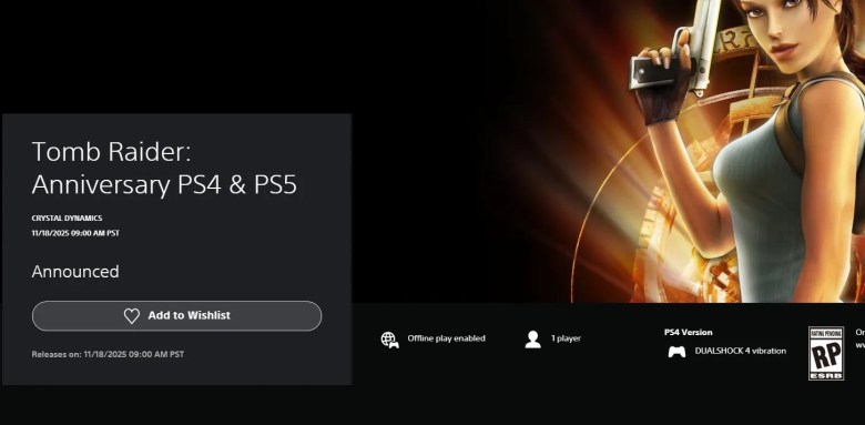 لعبة Tomb Raider Anniversary هي إعادة للعبة السلسلة الكلاسيكية وصدرت هذه النسخة تحديدًا في 2007 على بلايستيشن 2 و 3، وتم الإعلان عن قدومها ضمن مكتبة PS Plus Premium إلى بلايستيشن 4 و 5 هذا الشهر، لكن بشكل هادئ تم تأجيل قدومها لشهر نوفمبر.