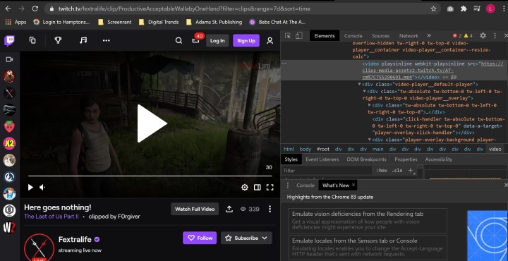 يعد تنزيل مقاطع Twitch مباشرة من المتصفح أمرًا بسيطًا للغاية. ومع ذلك، للحصول على أسهل طريقة لتنزيل المقاطع، ستحتاج إلى التأكد من استخدام Firefox. كان هذا يعمل على Chrome أيضًا، ولكن يبدو أنه لم يعد يعمل على هذا المتصفح. ستحتاج إلى استخدام أداة Inspect، ولكن بمجرد القيام بذلك، تصبح عملية التنزيل سهلة للغاية.