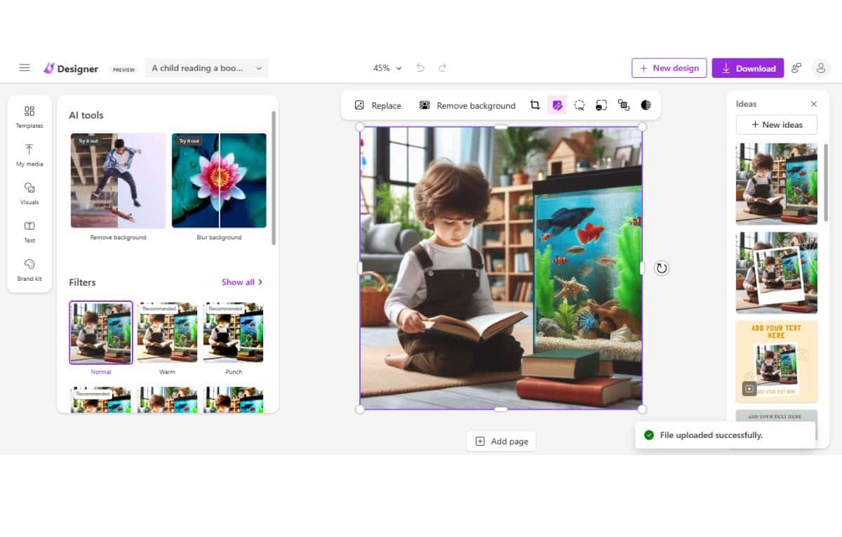 وبعد إنشاء الصور، يمكنك فتح أي صورة تعجبك في تطبيق Microsoft Designer، ولكن لن تتمكن من الوصول إلى جميع أدوات تحرير الصور بالذكاء الاصطناعي المتوفرة لمُستخدمي متصفح إيدج.