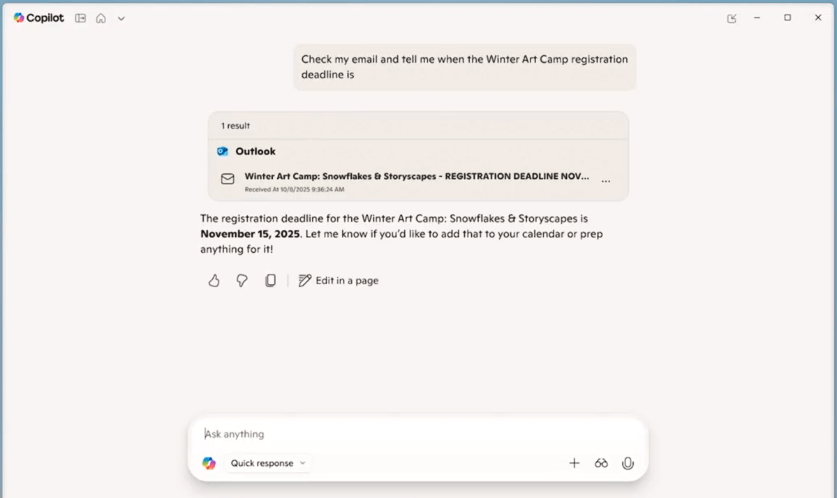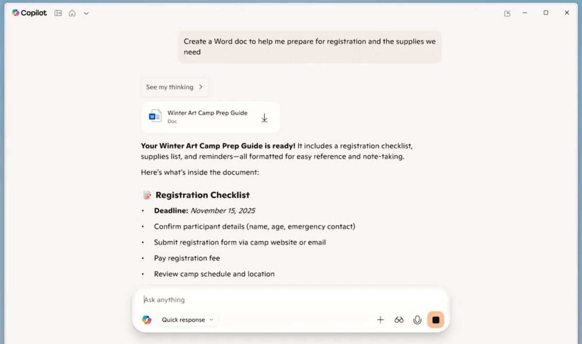 بشكل منفصل، تضيف Microsoft برنامج Copilot إلى شريط مهام Windows 11 وتجعل عبارة “Hey Copilot” كلمة تنبيه لتطبيق Windows AI. إنه جزء من جهود الشركة لتوسيع تواجدها عبر جهاز الكمبيوتر الخاص بك. ومع ذلك، فإن أكبر تحديث هو Copilot Actions، والذي سيسمح للمساعد فعليًا بتعديل الملفات وإعدادات النظام.