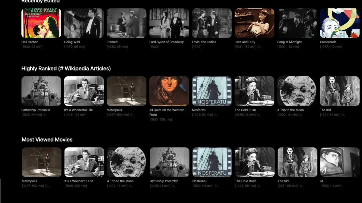 هناك العديد من المنصات الرقمية التي تسهل الوصول إلى هذه الأفلام الكلاسيكية. يعتبر WikiFlix، وهو مشروع يعتمد على ويكيميديا كومنز وأرشيف الإنترنت ويوتيوب، موردًا ممتازًا لاكتشاف ومشاهدة أفلام الملكية العامة بسهولة. تتيح هذه المنصات للمستخدمين الاستمتاع بهذه الأفلام مجانًا وبشكل قانوني.