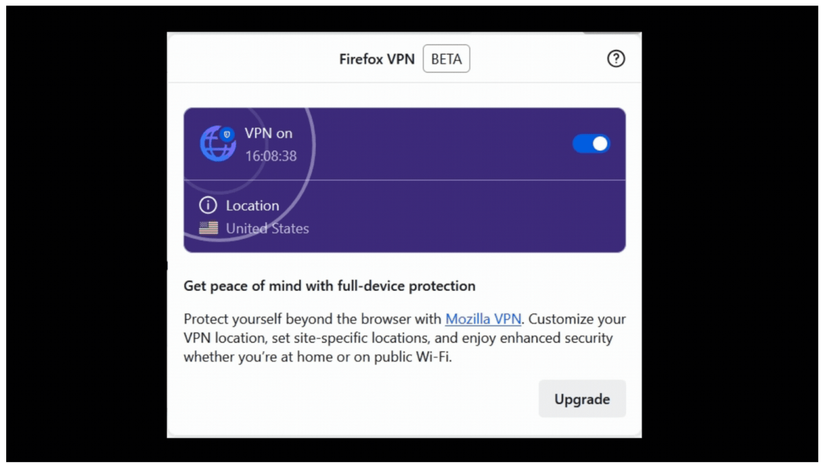 ستعمل جهود VPN من Mozilla على توجيه حركة مرور الويب الخاصة بك من خلال خوادم VPN التي تديرها Mozilla، وستحتاج إلى حساب Mozilla للوصول إليها. تقول Mozilla: “سيتم توجيه حركة مرور الويب الناشئة في Firefox عبر موقع VPN الأكثر أداءً والمتاح، داخل الولايات المتحدة”، ويمكن تشغيل الميزة وإيقاف تشغيلها.